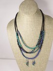 Vintage Petite Blue Green Glass Beads Necklace Earrings Set 11" Pierced C4791
