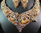 Ornate Gold Austrian Rhinestone Bib Statement Necklace Earring Set Bridal N1669g