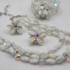 Czech White Atlas Satin Glass Beaded Multi 3 Strand Necklace & Earring Set