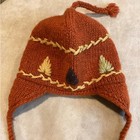 Kathmandu Imports 100% Wool Ear Flap Beanie Hat, Orange/earth Tone Leaf Detail