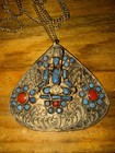 Vintage Nepal Tibetan Brass Turquoise Coral Pendant