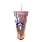 Starbucks 2017 Tumbler Cold Cup Iridescent Pink Rose Sequin 24oz