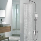 Chrome Exposed Shower Faucet System 8" Rain Shower Fixtures Set With Hand Shower