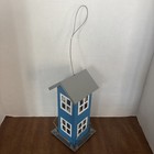 Metal Blue 2 Story House Design Wild Bird Hanging Feeder 10" New