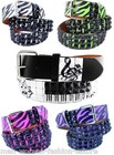 New Black & White & Hot Pink Zebra 3row Pyramid Studded Punk Goth Belt Men Women