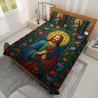 Merry Christmas Jesus With Roses Stained Glass Christian Faith Quilt Bed Set