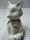 Small Ceramic Fox Figurine Holiday Woodland Decor White Green Bow