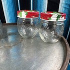 Set Of 2 Vintage Jelly Jars Vacuum Lids Fruit Design Glass