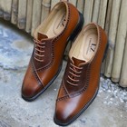 Men Handmade New Two-tone Wingtip Leather Brogue Oxford Lace Up Dress Shoes