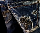 Rock Revival Trendi Distressed Slim Fit Denim Jeans With Stitching Design 33/32