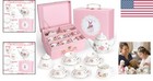 13 Pieces Porcelain Tea Set For Little Girls With Pastel Picnic Basket - Mini...