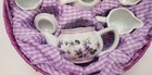 Porcelain Miniature Picnic Tea Set Pretend Play With Wicker Carrying Case Purple
