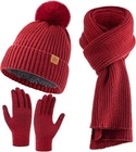 3 Pcs Winter Hat Scarf Gloves Set Women Beanie Touchscreen Fleece Lined Warm