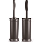Toilet Brush Holder 2 Pack Long Handle Deep Cleaning Bronze Compact Bathroom Set