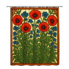 Vintage Floral Shower Curtain With Red Poppies And Blue Flowers