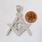 Men's Sterling Silver Masonic Symbol Hip Hop Pendant W/ Micro Pave Cz Stones