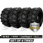 Set 4 10-16.5 Sks Skid Steer Tires 10pr Heavy Duty Fits Bobcat /cat Loaders