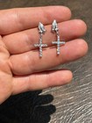 Real 925 Sterling Silver Men Ladies Praying Hands W. Iced Cross Dangle Earrings