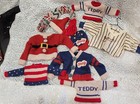 Vtg Mini Christmas Santa Hat Teddy Bear Doll Clothing Clothes Lot W/ Hangers