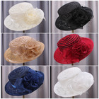 Women Dress Church Wedding Kentucky Derby Satin Feather Floral Sun Hat