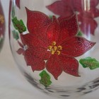 Christmas Handpainted Decorated Stemless Wine Glasses Poinsettias Set Of 4 New