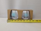 Snowflakes Glitter Printed Stemless Wine Glass Set Of 2 Christmas Holiday Winter