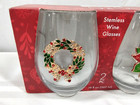 Holiday Stemless Wine Glasses Set Of Four New In Box