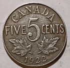 1922 Canada 5 Cents - Higher Grade Five Cent Canadian Nickel