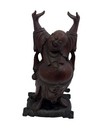 Vintage Large Laughing Buddha Hand Carved Dark Hard Wood Statue Chinese Happy