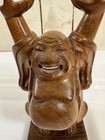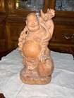 Happy Laughing Lucky Buddha Statue Mahogany Wood Hand Carved 16"x 10"x 6"