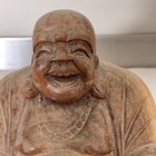 Hand-carved Wood Happy Buddha Statue 7" Tall X 13" Wide X 7" Deep 16 Pounds