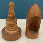 Miniature Asian Wood Carved Buddha Statue W/ Removable Cover