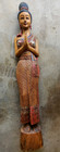 Remarkable Hand Carved Wood Buddha Statue Carrying Lotus Flowers 18" X 8" X 5"