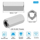 3pcs 3/8"-16 Unc 2" Length 304 Stainless Steel Coarse Hex Coupling Nuts
