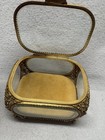 Vintage Jewelry Casket Trinket Box Ormolu Gold Filigree Beveled Glass Vitrine