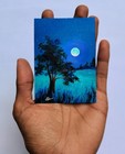 "enchanted Night" Aceo Original Acrylic Painting Vintage Art Moon Signed Atc