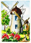 Aceo Original Art Windmill Hollands Watercolor Small Painting Mini Art Gift