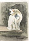Aceo Original Miniature Watercolor Painting : Cat Lick