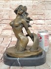 Rare Exquisite Nude Female Marble Base Bronze Sculpture Statue Figurine Artwork