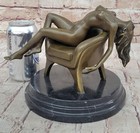 Rare Nude Female Marble Base Decor Bronze Sculpture Statue Figurine Nr
