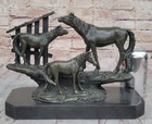 Rare Thoroughbred Equestrian Art 3 Horses Playing Bronze Marble Statue Sculpture