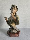 Alfred Foretay Woman Bust With Brown Marble Base, Antique Bronze Statue