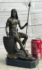 Real Bronze Long Haired Warrior W/ Spear Shield Statue Sculpture W Marble Base