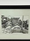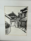 Original Charcoal Drawing Japanese Village Scene Woody Denis Signed Framed Art
