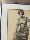 Vintage 1940s Charcoal On Paper Sketch Woman Figure Drawing 15 X 15