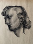 1952 Woman's Profile Charcoal Sketch, Drawing Dated & Signed 23.5" X 18