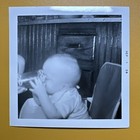 1956 Baby Drinking From Glass (with Some Help) Original Vintage Photo Snapshot