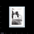 Old Vintage Photo Duo Pair Women Sitting On Brick Wall Original Snapshot Pic