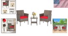 3 Pieces Patio Furniture Set Small Outdoor Wicker Rattan Front Porch Bistro Set