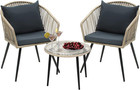 3 Piece Patio Bistro Set, Outdoor Wicker Apartment Balcony Furniture Sets, Ratta